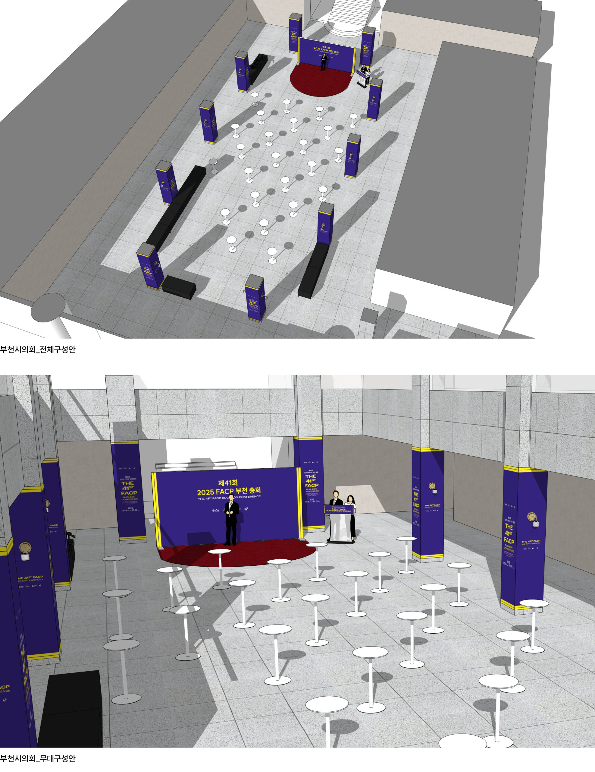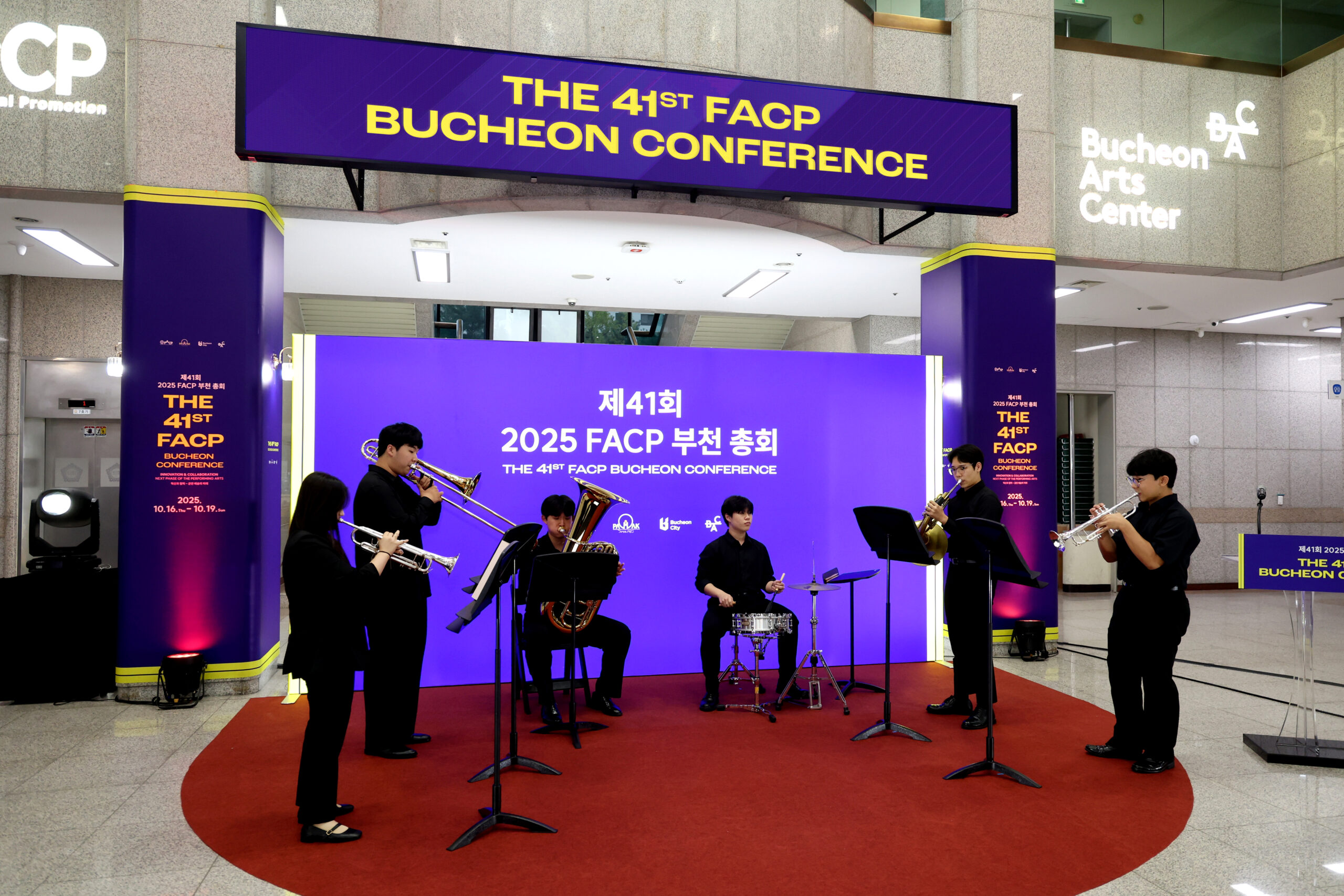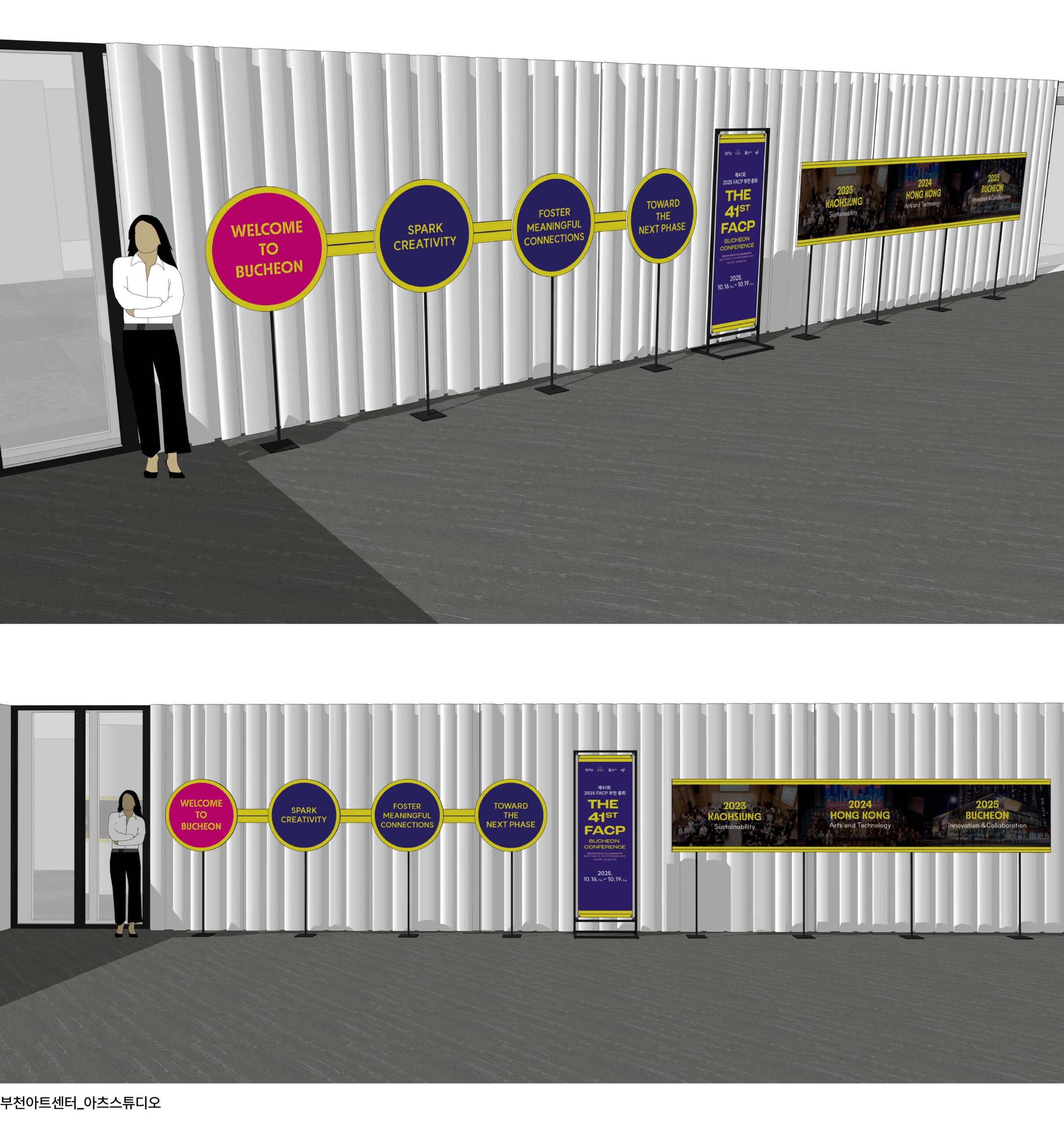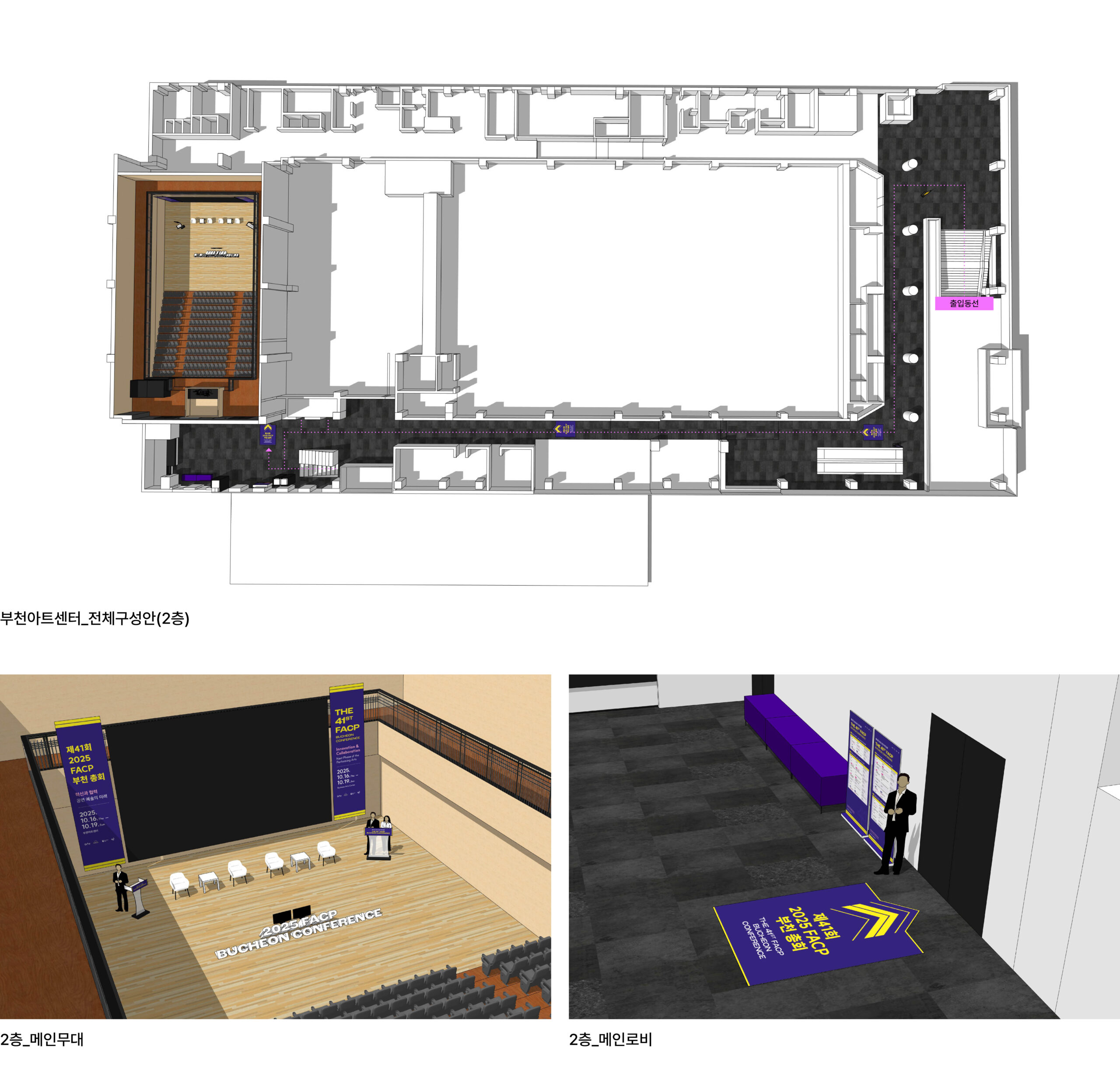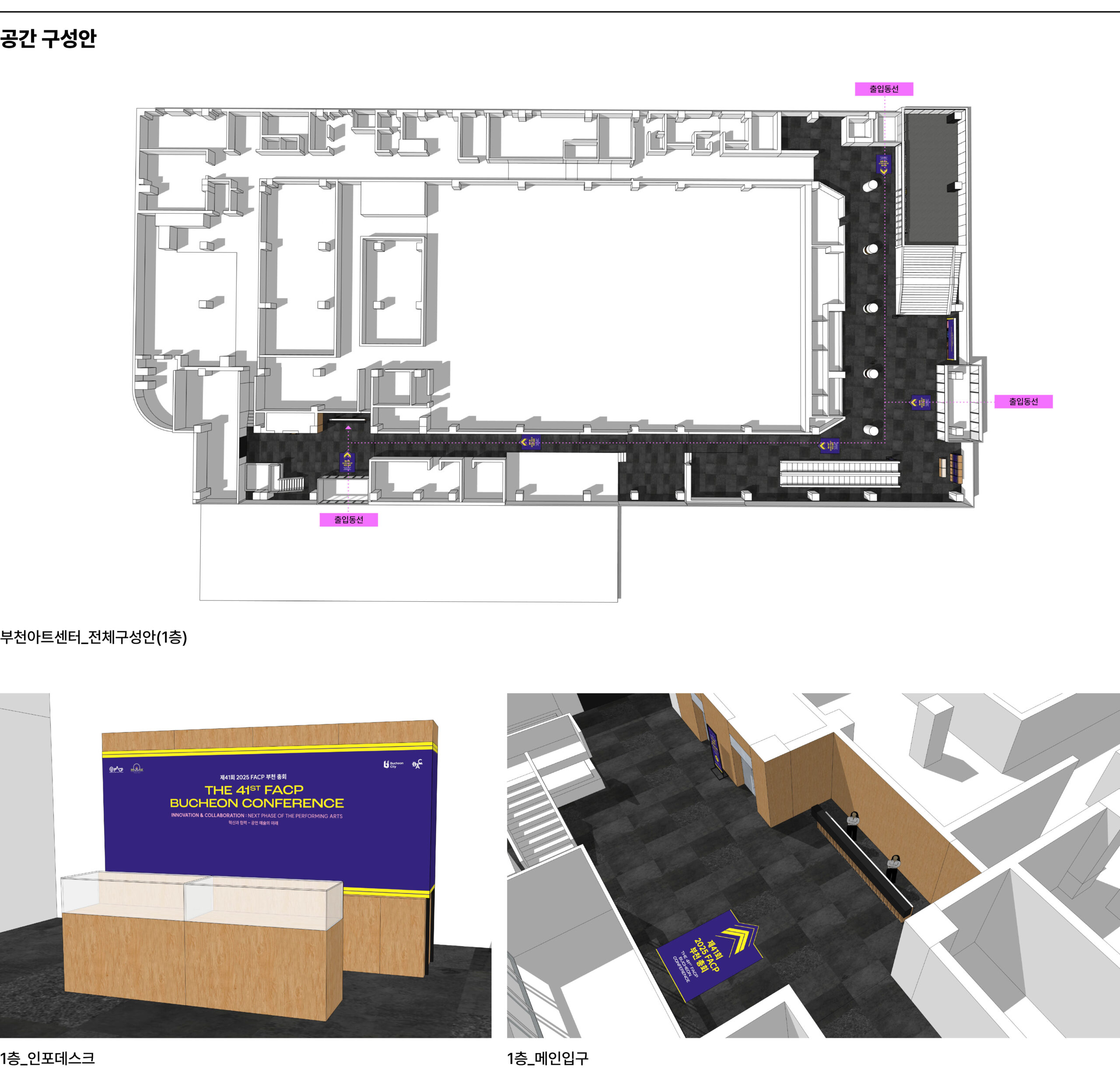 F.A.는 등록, 숙박, 수송, 연사 지원을 비롯해 현장 동선, 무대, 공간 운영 등 행사 전반을 총괄하며 연사, 회원, 공연팀, 피치팀 등 다양한 참가자를 유형별로 세심하게 관리하며 안정적인 운영을 이끌었다. 부천아트센터에는 포토존과 안내 사인을 설치하고, 부천시의회 오프닝 리셉션 공간은 기둥 래핑과 연출로 구성해 부천시와 행사의 정체성과 분위기를 통일감 있게 전달했다. 체계적인 운영과 세심한 현장 설계를 통해 참가자들의 몰입도와 만족도를 높여 행사를 성공적으로 마무리 하였다.