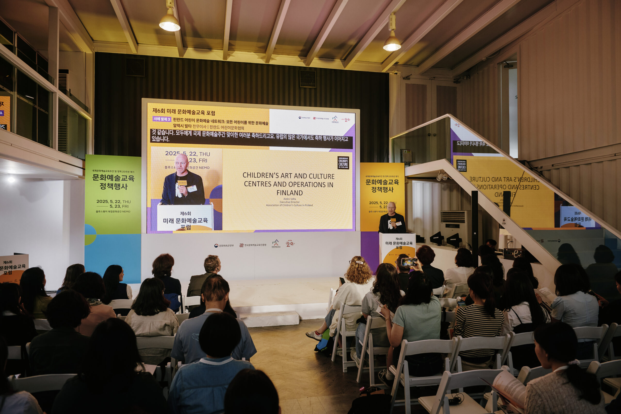 <누구나 예술을 시작할 때> 라는 슬로건으로, 문화예술교육 정책 20주년을 기념하여 개최된 정책행사는 5 22일 정책 세미나, 5 23일 제6회 미래 문화예술교육 포럼으로 구성되었다. 정책 세미나에서는미래를 만드는 문화예술교육의 새로운 패러다임을 주제로 관계자 발제와 토론이 진행되었으며, 6회 미래 문화예술교육 포럼은 4개국의 해외 전문가와 함께미래세대 어린이와 가족을 위한 예술경험과 문화 공간의 혁신에 대해 담론을 나누었다.