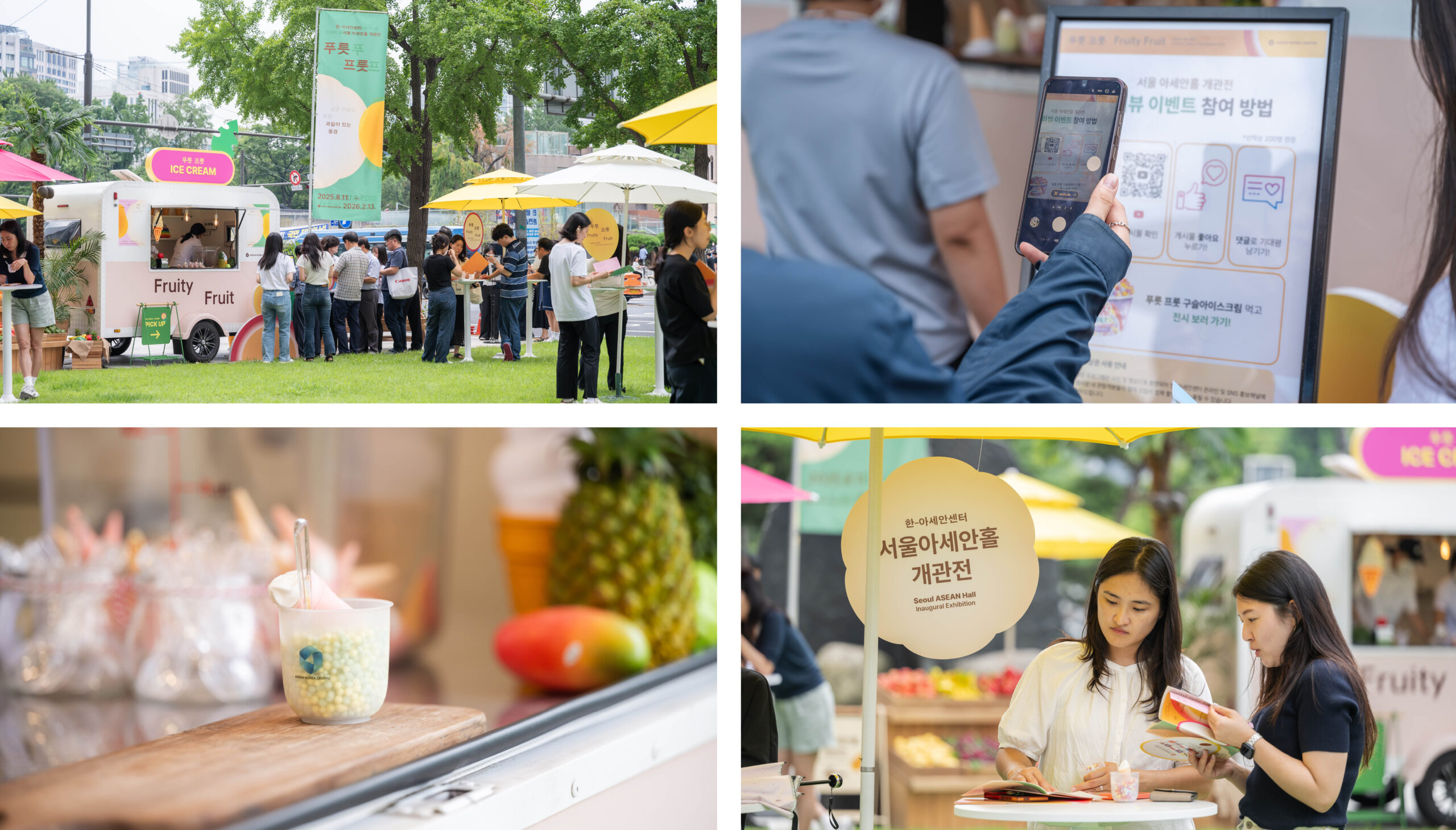 8월 8일 아세안데이(ASEAN DAY)에 개관한 서울 아세안홀의 개막식은, 서울신문 잔디광장에서 한여름의 열기를 식혀줄 ‘푸릇 푸룻 아이스크림’을 관람객에게 증정하는 전시 프리뷰 이벤트로 문을 열었다.