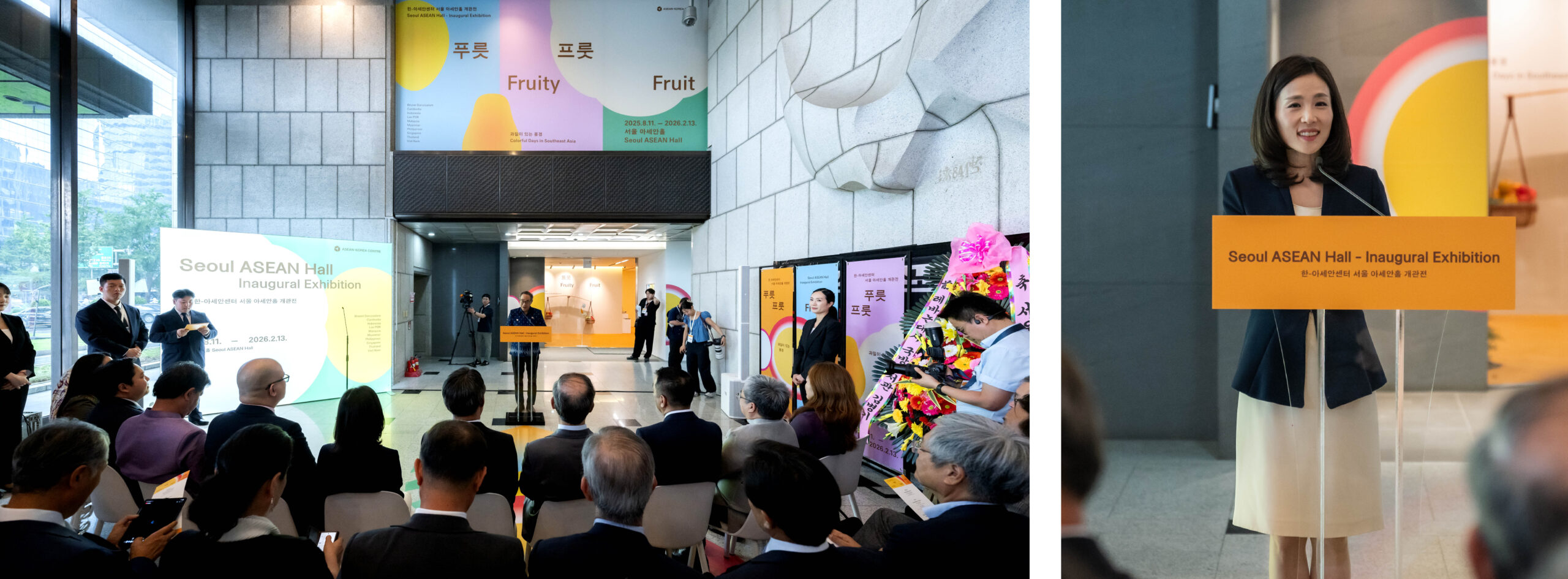 이후 서울신문 로비에서는 한–아세안센터 사무총장의 개관 기념사를 비롯해 서울주재 아세안대사협의체(ACS) 의장과 외교부 김진아 제2차관의 축사, 아세안 10개국 주한 대사가 참석한 개관 세레머니 및 큐레이터의 전시 해설 투어가 진행됐다. 특히 개관 세리머니에서는 브랜드 디자인 컬러를 반영한 리본으로 커팅식이 열리며, 서울 아세안홀의 공식 개관을 상징적으로 알렸다.